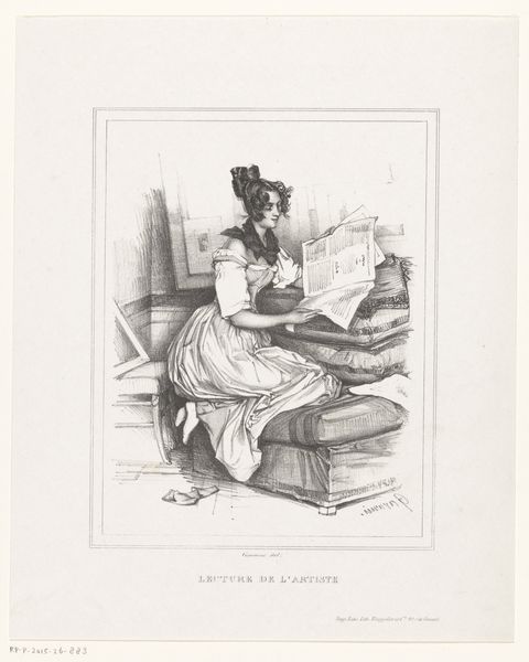 This lithograph, "On n'est jamais bien servi que par soi-même" by Honoré Daumier, captures a scene of self-reliance. The composition is dominated by the figure of a man, whose elongated form and precarious stance immediately draw the eye. Daumier's use of line is particularly striking here. The sharp, almost caricatured lines define the man’s body and clothes, creating a sense of both fragility and determination. Notice the way the light falls across the scene, casting long shadows that emphasize the man's isolation. The texture of the lithographic stone itself adds a layer of grit to the image, underscoring the humble nature of the scene. The formal elements reflect a broader concern with individualism. The man's self-sufficiency challenges traditional hierarchies, suggesting a world where one must rely on oneself to navigate life. It's a powerful statement about personal agency and the human condition, rendered through careful attention to line, light, and texture.