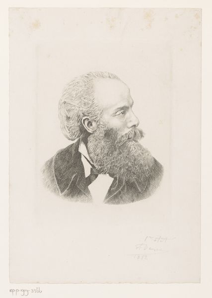 Auguste Danse made this portrait of Eugène Joors as an etching in 1883. Here we see a man with a long beard who wears a jacket with a bow tie. This print was created during a period when the art world was undergoing significant changes. In the late 19th century, Realism and Impressionism challenged academic art. The institutions of art, like the Royal Academies, faced increasing criticism for their conservative standards. Artists sought alternative venues to exhibit their work. The etching technique itself became a medium for artistic experimentation and a vehicle for social commentary. Artists used printmaking to disseminate their ideas and reach a wider audience. Art historians often consult exhibition catalogues, artists’ letters, and critical reviews. These resources can reveal the complex social and institutional dynamics that influenced both the production and reception of art in its own time. By understanding these factors, we can better appreciate how the art reflects and shapes the world around it.