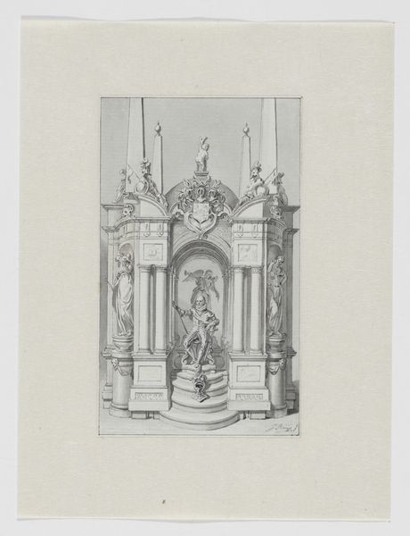 Carl Albert von Lespilliez created this print, "Kachel in nis," sometime in the 18th century. It presents an elaborate tiled stove set within an alcove. What we see here is not just a functional object, but a potent symbol of status in its time. The intricate Rococo ornamentation speaks to the cultural values of the era, a time when the aristocracy and wealthy bourgeoisie displayed their affluence through elaborate domestic settings. The stove, prominently displayed within a niche, becomes a focal point of the interior, reflecting the importance placed on both comfort and appearances in these social circles. To fully understand this image, we can look into design trends and the decorative arts of 18th-century Europe. Resources, such as period room interiors and design pattern books, can help us understand the stove’s original context and its role within the power dynamics of its time.
