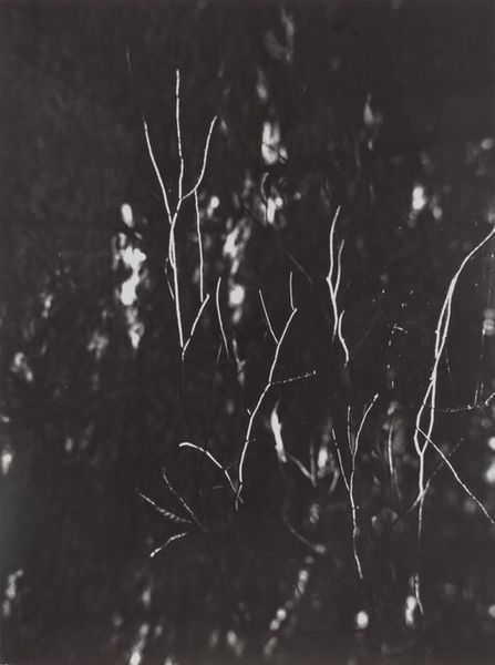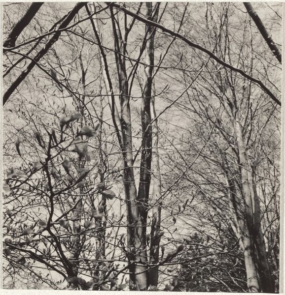 Tom Young created this gelatin silver print, "Tree Curtain", using a traditional photographic process. The image begins with light-sensitive emulsion spread on paper, an industrial product, and the final result depends on a combination of mechanical and chemical means. The transformation from tree to photograph hinges on the act of observation, a human interaction, and the chemical reaction of silver compounds to light. The tonal range of the photograph is influenced by the careful management of light exposure and development time, showcasing the artist's technical expertise. The texture of the final print is a result of the materials used - the slick surface of the paper contrasts with the matte shadows of the gelatin. Although we think of photography as a purely representational medium, here we see that the material and making also have a huge impact on the final image.