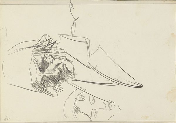 Curator: We're looking at "Standing Woman, Seen From the Back," a pencil drawing by Isaac Israels, dating from somewhere between 1915 and 1925. It's part of the Rijksmuseum's collection. What's your immediate impression? Editor: The word "fleeting" comes to mind. Like a memory sketched onto paper before it vanishes. The quick, light lines—almost as if Israels didn't want to impose too much on her stillness. Curator: The sketch captures a particular pose with great economy of line. The form, though minimally described, carries a remarkable presence. Observe how the subtle shifts in pressure animate what would otherwise be a static representation. Editor: Absolutely. You can almost feel her shift her weight, maybe she’s listening intently. It’s not idealized. There's a realness to the way the neck slopes and the shoulders sit, conveying this quiet, contemplative moment. It reminds me, in a way, of Degas' dancers—except, there's no stage, just the intimate gesture of seeing. Curator: Considering the drawing's likely placement within a sketchbook context, it resonates with the intimacy and immediacy one often finds in preliminary sketches, those quick studies undertaken to seize form and pose as it occurs to the artist. A kind of visual note taking. Editor: Yes, like he's chasing after the essence of a feeling—or, perhaps, the essence of this particular person on that particular day. It leaves room for imagination, to complete the story yourself. Curator: And while the work's seeming simplicity might invite interpretations of incompleteness, its suggestive power invites a reflection upon our own habits of seeing, and the minimal conditions under which perception transforms into understanding. Editor: In the end, it’s not just about what’s depicted, but what lingers after we look away—the echo of a form, the memory of a gesture, and isn't that where true art begins anyway? Curator: Indeed. This work speaks softly, but its message reverberates with lasting resonance.