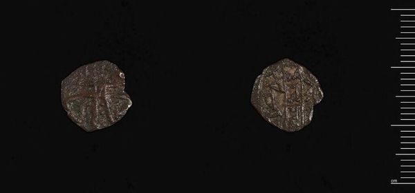 Curator: This object is a tornese, a coin, issued by Andronikos III Palaiologos. You can find it here at the Harvard Art Museums. Editor: They look like small, unassuming discs. You can sense the handling, the wear, a tangible history right there. Curator: Indeed. Andronikos III ruled the Byzantine Empire in the 14th century. The images and inscriptions on the coin would have been carefully chosen to project power and legitimacy during a period of political instability. Editor: The metal itself would have been part of that projection, wouldn't it? How much did the materials used to produce it influence the perceived value and, consequently, the power it held? It's labor distilled into a tiny, portable form. Curator: Exactly. Minting coins was a prerogative of the state, and this coin reminds us of the Byzantine Empire's complex economic and political systems. Editor: Holding this would really connect someone to the material realities of the era, a very physical link to a world of trade and power. Curator: It is compelling to consider how something so small could carry such weight in the broader historical narrative. Editor: Absolutely. It makes you wonder about the hands it passed through, the transactions it facilitated, and the stories it could tell.