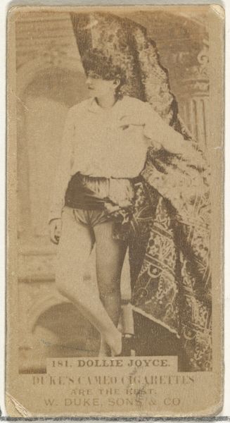 This is Miss Miller, a promotional card from the Actors and Actresses series issued by Duke Sons & Co. around the turn of the century to promote Cross Cut Cigarettes. These cards were a clever marketing strategy, tapping into the burgeoning popularity of theater and the public's fascination with performers. Miss Miller, like other actresses featured in these series, embodies the idealized femininity of the era. She is presented as both alluring and demure, a reflection of the complex and often contradictory expectations placed on women in the public eye. The actresses featured were overwhelmingly white, reinforcing prevailing beauty standards and the limited opportunities afforded to women of color. While these cards offered a form of visibility for actresses, it was a visibility carefully curated and controlled by the male gaze and commercial interests. In our contemporary moment, looking at Miss Miller, we might consider the many layers of performance and representation, and also the question of who gets to be seen, and how.