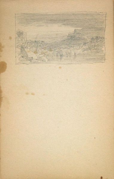 Curator: This is Sanford Robinson Gifford's "On Round Lake, New York." Note the delicate pencil work capturing a serene landscape. Editor: It evokes a sense of solitude, doesn't it? The sparse lines emphasize the vastness of the lake and the quiet mountains. Considering Gifford was part of the Hudson River School, I wonder how his landscapes reflected the socio-political currents of his time, specifically regarding expansion. Curator: Indeed, but let's appreciate how the composition leads the eye; the horizontal lines of the lake and mountains create a sense of balance, while the textured brushwork of the trees provides visual interest. The work is a fine example of tonalism, wouldn't you say? Editor: True, the muted tones create a peaceful ambiance. However, I see it as more than just an aesthetic exercise. Round Lake, like many landscapes, was likely undergoing changes due to industrialization and tourism. Did Gifford’s art support the popular nineteenth-century narrative of Manifest Destiny or did it promote counter-narratives about preservation? Curator: That's a valid interpretation, but it’s interesting how much he achieved with so few lines. Perhaps its openness invites the viewer to find their own meaning. Editor: Perhaps. It certainly gives us space to consider its place within broader histories of land use and representation.