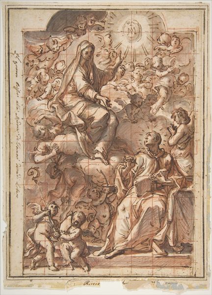 Ludovicus Finsonius created this dynamic, yet disturbing, image of Apollo and Diana slaying the children of Niobe with pen and brown ink. The raw, unrefined quality of the medium lends the artwork an immediate and visceral presence. The deliberate choice of pen and ink, a relatively accessible medium, suggests a democratizing impulse, liberating art from the confines of high art. This choice resonates with wider social issues of labor, politics, and consumption. The lines, rapidly sketched and roughly finished, convey the horror of the massacre. It suggests a rejection of the pristine and polished aesthetic, embracing instead a rawness that aligns with the grim reality of the scene. The amount of work invested in producing this detailed narrative is palpable, a testament to the artist's commitment to conveying emotion and storytelling through the simplest of means. It's clear that materials, making, and context are vital to truly understand this artwork, highlighting how conventional divisions between fine art and craft are not always useful.
