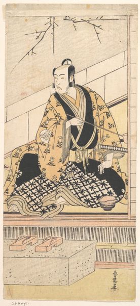 Curator: Here we have an untitled gelatin-silver print dating from the late 19th to early 20th century, currently held in the Minneapolis Institute of Art collection. Editor: It's immediately striking; there’s an arresting stillness and dignity to the subject's gaze. It's also quite romantic. It evokes a sense of quiet domesticity but also, perhaps, of enforced roles. Curator: Yes, there's a posed formality characteristic of portraiture from that period, but within the conventions of the era, she seems grounded and assured. I find compelling the layering of symbols in the head covering, the striped kimono, the objects she holds. To me they speak to ritual and custom. Editor: I agree about the posed formality. Works categorized within 'Orientalism' often flattened diverse cultures into a singular, exotic "other." How can we contextualize this portrait so that it speaks back to that history? I notice the bare feet. The Western gaze so often exoticizes these types of images. I see vulnerability—an unequal power dynamic is inherent in the encounter of the photographer and subject. Curator: Those are very valid considerations, and the artist is, after all, unknown, so the circumstances under which this was created and viewed remain obscure. And yet, she projects authority, standing firm despite the context. The photograph could depict various identities or stations – is she a worker? An attendant? The small teapot she holds, along with what looks to be offerings of food on the platter, could be culturally significant clues. These items speak of attentiveness, nurturing, maybe hospitality. Editor: Her presence, in itself, counters the erasure often experienced by women and people of color in art history. Despite the possible context of Orientalism and forced posing, her unwavering look pierces through time, challenging viewers even today to reckon with her presence and perspective. Curator: Absolutely, she serves as a strong visual emblem of perseverance in the face of an unbalanced representation. Her presence lingers far longer than the assumed colonial perspective does. Editor: I see this image as a historical artifact but also a testament to resilience and dignity under oppressive regimes of power. Curator: A poignant conclusion, capturing the power of photographic image and complex meanings of art to engage, provoke, and remain thought-provoking across generations.