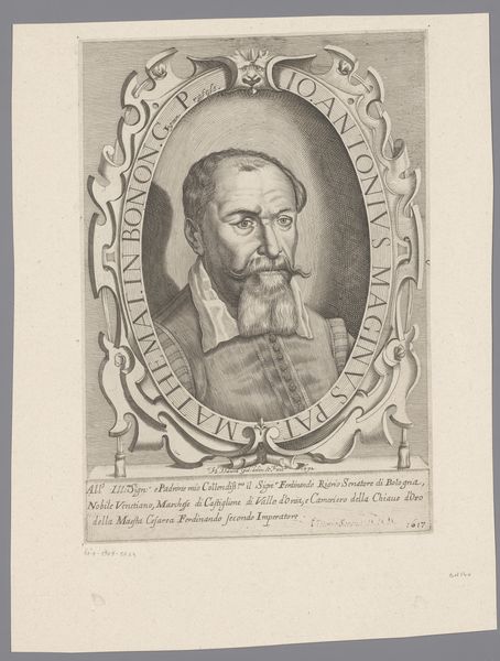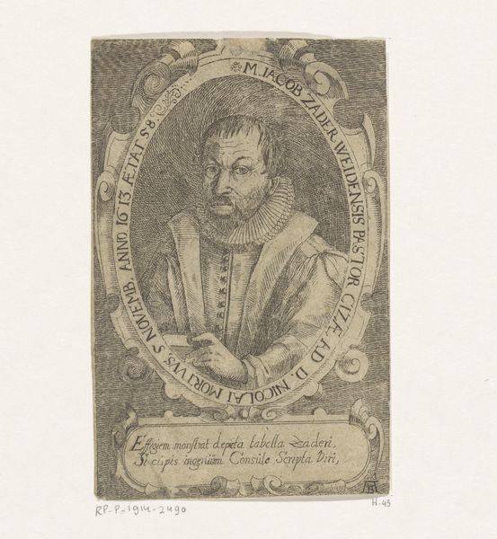 Editor: Here we have "Portrait of Jean Caffart" made in 1597 by Jacques Granthomme, an engraving housed at the Rijksmuseum. It feels very formal, almost austere, especially given the ruff and the tightly controlled lines of the engraving. What can you tell me about it? Curator: Well, focusing on its materiality, the print exemplifies how engraving facilitated the spread of images and, consequently, ideologies. Think about the copper plate, the labor involved in its meticulous crafting with specialized tools. The act of printing multiple copies made the portrait accessible beyond Caffart’s immediate circle. How do you think that affected his social standing? Editor: It suggests that he was someone important enough to be disseminated. Like, having access to mass media is an indicator of power and prestige, even in the 16th century. Curator: Precisely. It's also important to note the cultural context; printmaking flourished in the Netherlands during this period, due to religious reform, intellectual revolution, and rising wealth. These combined, driving both demand and the means of production for engravings. Can you see how the choice of engraving wasn't merely artistic, but also a product of complex social and economic forces? Editor: Definitely! I hadn't thought about it that way before. Seeing it as not just an image, but a manufactured commodity. Curator: Exactly. And thinking about its preservation and display today in the Rijksmuseum, the art market also adds to the historical meaning of the piece. Editor: That completely shifts how I view the piece, recognizing the social mechanisms required for its existence. Thank you for opening my eyes.