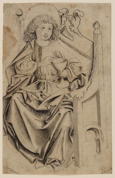 Editor: This is "Seated Youth Writing in Book," attributed to Raphael, dating from the 17th or 18th century. It’s a drawing made with pen, ink, and charcoal on paper, but also seems to exist as an engraving or print. It feels like such a simple scene, yet there’s something really captivating about the way the artist rendered the light and shadow. What's your take on this drawing? Curator: I'm immediately drawn to the labor involved in its creation, and also in its reception. The act of drawing, especially with these materials – the deliberate choice of pen, ink, charcoal combined with an engraving suggests an investment in accessible image-making and its distribution. What kind of access might people have had to these prints and drawings? Editor: That's interesting. So you're thinking about how it was reproduced and who could have owned a copy? I guess the prints would have been far more widely available than an original drawing. Curator: Exactly. It makes you wonder about the original purpose, whether it was meant to be disseminated from the start, potentially challenging the traditional notion of art as unique. Also, the paper itself is part of the material story – was it handmade, what kind of pulp, who was making this paper? Was there a shift of who consumed books or education itself that played a factor? Editor: I hadn’t even considered the paper. So much work went into making art accessible that we might not notice! Curator: Consider too the sitter: the labor implied in learning, writing, and the potential future employment dependent on such learned activities. Editor: That’s a very different angle than I considered! I suppose I just saw a nice drawing of a person, but it’s far more complex than that. It is clear there were many unseen processes in place that supported education, artistic and broader consumption.