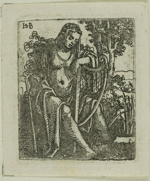 Sebald Beham etched this delicate "Woman with a Harp" in the 16th century, rendering the figure and her instrument against a lush landscape. The harp is an ancient symbol; in antiquity, it was linked to Apollo, god of music and harmony, and by extension, to intellectual and moral order. Beham’s melancholic figure evokes the archetype of the pensive muse, her gaze directed downward, seemingly lost in thought. Interestingly, the motif of a woman with a harp appears throughout history. We see echoes in depictions of King David, whose harp soothed King Saul’s madness, or even the romanticized Celtic bards. The emotional power of music is a potent force, engaging viewers on a deep, subconscious level. This image calls to mind the cyclical nature of symbols, resurfacing and evolving, bearing new meanings across different eras, yet rooted in our shared cultural memory.
