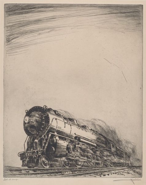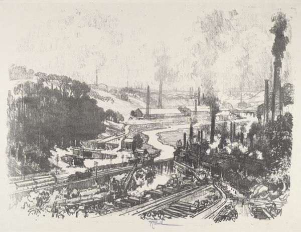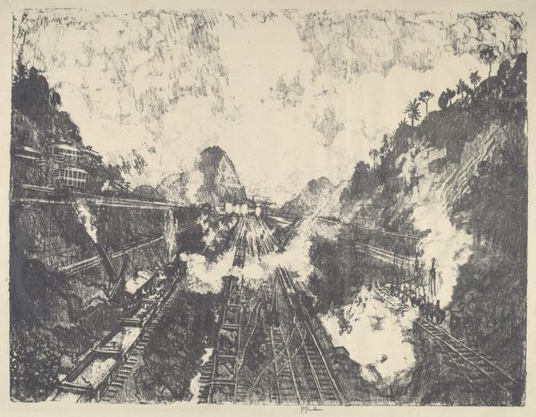Joseph Pennell made this print of a steam shovel at work with ink on paper. The drawing has a really restless energy, you can see the lines are scratchy, like he’s really digging in. You can almost feel the vibration of the earth being moved. He’s used these rapid, short marks to give us all the details, from the rocky walls of the Culebra Cut, to the plumes of smoke rising from the machinery. Look at how he’s described the rocks on the left, all these tiny lines layered on top of each other, building up a sense of depth and texture. It's like he's trying to capture not just the look, but the feeling of this massive construction project. This reminds me of the futurist’s love of industry and machinery. You see that in Marinetti's manifestos, as well as in paintings by people like Boccioni or Severini, who were also trying to capture movement and energy in their work, though with very different techniques. So, is it about the glorification of progress, or about the relentless force of the modern age? Maybe it’s both, or neither!