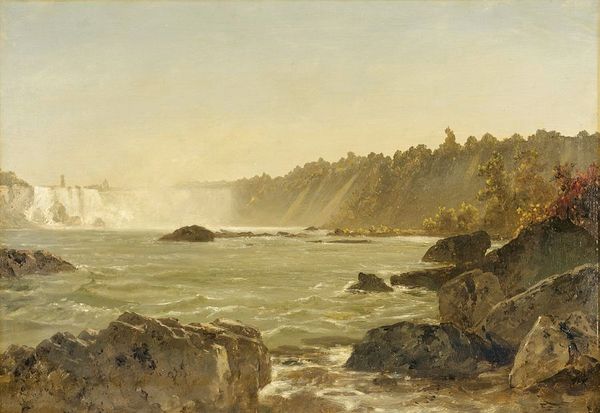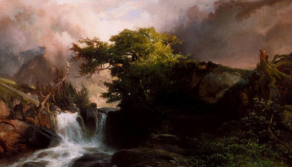 "The Falls of St. Anthony" was realized by Albert Bierstadt using oil paints on canvas, a traditional medium for landscape painting of the time. Bierstadt meticulously applied layers of pigment, creating a smooth surface to capture the grandeur and sublime nature of the American landscape. The inherent qualities of oil paint allow for a high level of detail, seen in the textures of the rocks, trees, and cascading water. The artist used brushes to blend the paints and achieve a sense of depth and atmosphere. The process is tied to wider social issues of manifest destiny. These large paintings, commissioned by wealthy patrons, reinforced a romanticized view of the American West as a land of opportunity, downplaying the exploitation and displacement of indigenous populations, all fuelled by the work that goes into extracting natural resources, and the promise of wealth creation. Ultimately, understanding the materials, labor, and context challenges the traditional distinction between fine art and craft, inviting us to consider the social and cultural significance embedded within Bierstadt's painting.
