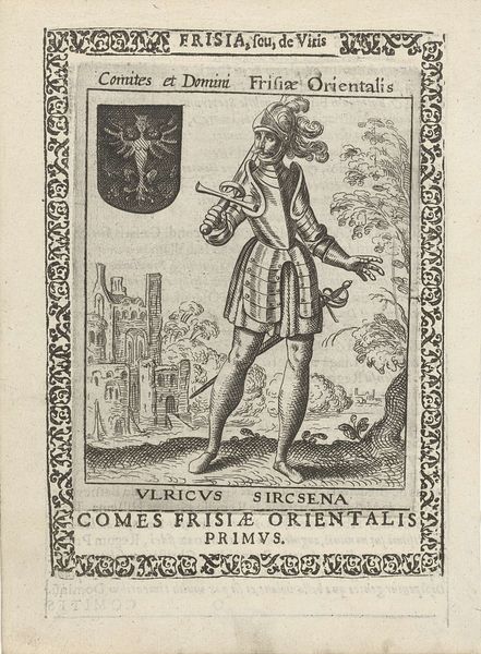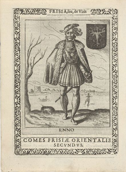 This engraving of Willem II, second king of the West Frisians, was made by Pieter Feddes van Harlingen in the 17th century. It depicts Willem wearing a crown and cape, holding a staff in front of a landscape featuring a coat of arms and the settlement of 'Harlinga'. Pieter Feddes van Harlingen worked during the period that saw the rise of the Dutch Republic. Prints like this one contributed to a sense of Dutch identity and national pride, often relying on historical and mythological themes. Frisia, corresponding to the northern parts of the Netherlands and Germany, was an important region in the Roman period. The text in the engraving emphasizes the region and its people. The image creates meaning by positioning Willem as the king of this region and by using the visual codes of royalty, such as crown, staff and cape. Art historians examine prints like this in the context of the printmaking industry and the cultural function of images. We would study iconographic sources, coats of arms, and texts from this period to better understand its meaning. This reveals the crucial role of art as something that is embedded in complex institutional and social structures.