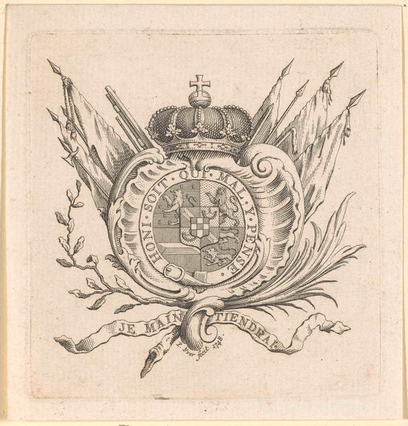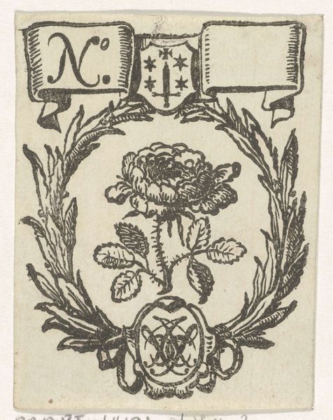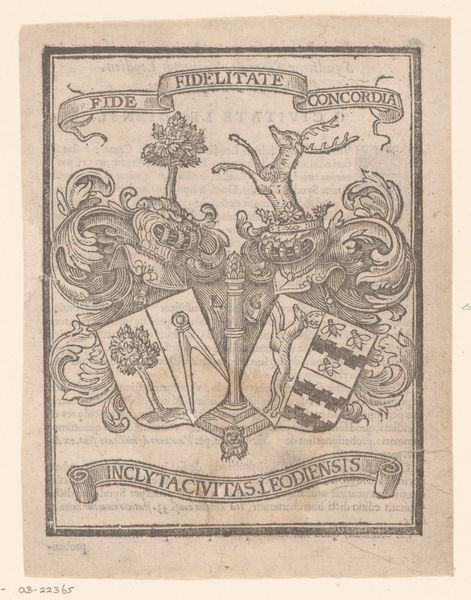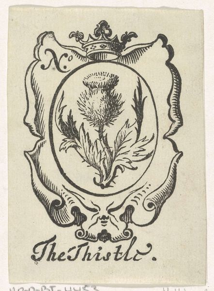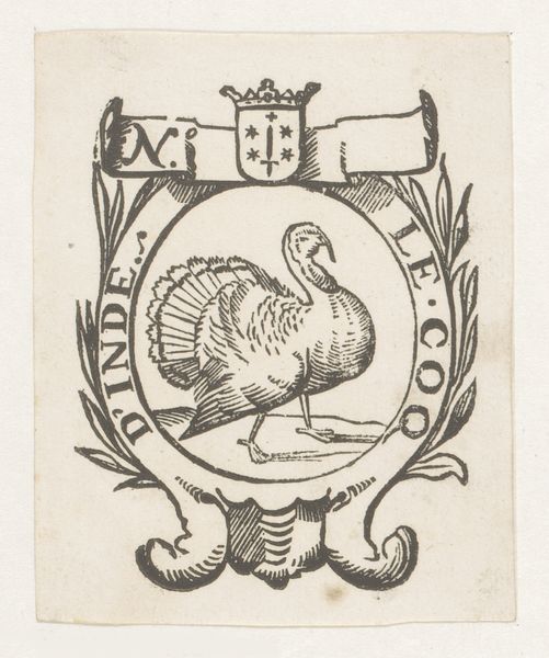 Curator: Here we have a 17th-century print by an anonymous artist entitled "Vignet met een pauw en het wapen van de stad Amsterdam met een kroon," which translates to "Vignette with a peacock and the coat of arms of the city of Amsterdam with a crown." Editor: You know, the immediate feeling I get is one of contained elegance, like a whispered secret held within that oval border. It feels intimate, almost like a personal seal. Curator: It is rather intricate, wouldn’t you say? Note how the city's coat of arms featuring three crosses, sits just above a proud peacock, both encircled by a laurel wreath, a classic symbol of victory and honor. Peacocks were symbols of pride, of course, but also immortality, linked to solar cults with their radiant 'eyes.' Editor: Pride is certainly radiating from that peacock! The detailing of the feathers is just superb, considering the size, or, likely, lack thereof. There is a delightful contrast between the somewhat austere coat of arms and the sheer flamboyant spectacle of the bird. It feels...playful, doesn’t it? Curator: Absolutely. The emblem of Amsterdam here may connect civic pride with this imagery of almost vain beauty and incorruptibility; these are values they wished to uphold. Remember, Amsterdam was a major power in the 17th century, a real 'peacock' of trade and culture. Editor: It makes me wonder who commissioned this and for what purpose. The personal touch suggests it was made for an individual, as if some Matthias of the time thought they were the very incarnation of Amsterdamian splendor and desired this emblem specifically as their symbol. Curator: The lettering circling the central emblem adds a layer of personalization and mystery. I believe it references the name Matthias. The laurel wreath further cements this as something akin to an achievement or mark of nobility, an identity statement, so to speak. Editor: An elegant declaration, indeed. Seeing this little jewel, one can appreciate the intricate ways our forebears saw, portrayed and expressed themselves with objects, signs and symbols. Everything in life can mean a little more, don’t you think? Curator: Very true. Art always holds up a mirror, allowing us a better view of ourselves as individuals and communities.