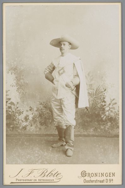 This photographic print captures a student from Groningen in masquerade costume. Note the elaborate ruff collar and wide-brimmed hat, symbols of opulence that evoke a sense of playful extravagance. The sword, prominently displayed, carries echoes of earlier times. It's a potent symbol of power and defense that transcends mere utility. Think of the ceremonial swords of medieval knights and Renaissance nobility, emblems of honor that were brandished across different eras, echoing in this student's attire. The theatrical garb touches something primal within us—a celebration of the self through disguise. Across centuries and continents, from ancient Roman festivals to Venetian carnivals, the mask has served as a powerful tool for individuals to explore different facets of their identity. It is a recurring motif in the human psyche, constantly being rediscovered and repurposed.