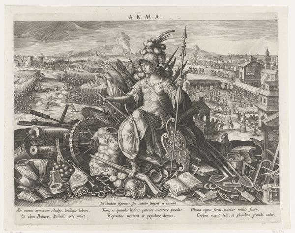 Editor: Philips Galle's engraving, "Kolos van Rhodos" from 1572, presents such a dramatic scene. It looks like it depicts the fallen Colossus, alongside this impossible version with his legs spanning the harbor entrance. The small figures swarming the wreckage feel almost overwhelmed by the sheer scale of it all. What social or political narrative do you think Galle was trying to construct here? Curator: That’s a great question! Let's consider this print not just as a depiction of an ancient wonder, but as a product of its own time, the 16th century. Galle and his contemporaries were fascinated with antiquity, yes, but their representations served contemporary purposes. It is part of a series on the Seven Wonders of the Ancient World. What would it mean to show a wonder destroyed by natural causes in a historical moment riddled with conflict and the instability of political power? Editor: So, it's not just about admiring the past, but maybe commenting on the fragility of even the most impressive achievements? Were these images perhaps also circulated amongst the growing merchant class? Curator: Exactly! Consider how prints functioned in the 16th century. They circulated widely and often served to transmit knowledge and ideologies. Representing a fallen monument and also its glory was a visual strategy that underscored the transience of earthly power. The Colossus could serve as a memento mori reminding viewers, especially wealthy merchants and rulers, of the inevitable decline of all empires. Do you see that resonance between power, trade, and morality? Editor: Yes, I see. The image gains another dimension thinking about its audience and function. I thought it was just a historical depiction, but it's a commentary relevant to its own time. Curator: And that’s how art becomes a reflection of the societies that create and interpret it! Editor: That really makes me see this print and similar historical images in a completely new way. Thanks!