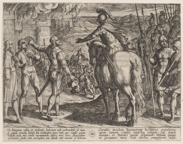 Antonio Tempesta created this print, "Plate 3: Alexander Instructing his Soldiers," in Italy, most likely at the end of the 16th century. It's part of a series illustrating the life of Alexander the Great, a popular subject during the Renaissance, when humanist scholars looked back to antiquity for models of virtue and leadership. But what does it mean to depict Alexander in this way? This image presents Alexander as a powerful, almost divine figure, leading his troops with decisive authority. The print's visual codes, like the eagle on the banner – a symbol of Roman imperial power – link Alexander to the grandeur of the Roman Empire, seeking to legitimize contemporary rulers through historical association. This print served a cultural function, reinforcing hierarchies and celebrating military might. As historians, we examine such images alongside texts and other cultural artifacts to understand how power was represented and negotiated in the early modern world. Art is always contingent on its social and institutional context, and our interpretation is enriched by understanding those forces.