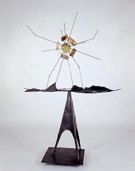 Louise Bourgeois made this sculpture, The Winged Figure, and it's striking how she assembles these forms. It's all about stacking and balancing, creating something that feels both precarious and solid. The sculpture is made from bronze, and it has this rough, almost primal texture. The metal looks like it's been through something, weathered, maybe even a bit bruised. It’s not polished or smooth; you can see the marks of the making, the artist's hand. This emphasis on materiality brings out the emotional weight of the piece. There's a beautiful tension in the way Bourgeois balances these geometric shapes; it's both abstract and deeply personal. This sculpture reminds me of Constantin Brancusi's endless column, but with a twist. Bourgeois brings her unique sensibility, her interest in the body, and psychological states. It becomes a totemic figure of the self. It’s more than just an object. It's a statement.