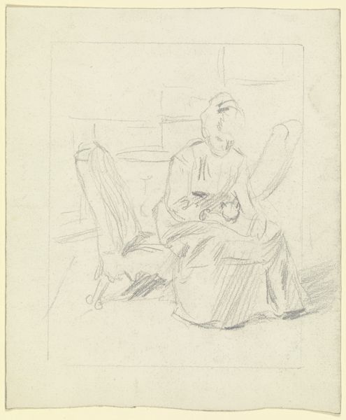 Editor: Here we have Johannes Abraham Mondt’s "Twee studies van een zittende vrouw met baby," made sometime between 1869 and 1941 using pencil. It feels like a very intimate, personal moment captured in these sketches. What do you see in this piece? Curator: Well, it’s more than just an intimate scene. Look at the stark simplicity of the lines. This work can be interpreted as a quiet resistance to the idealized, often unattainable, portrayals of motherhood that were so dominant in that era. Editor: Resistance? How so? Curator: Consider the time. The late 19th and early 20th centuries saw very specific, restrictive roles imposed on women, particularly mothers. Mondt offers something different. He presents everyday domesticity, perhaps subtly undermining those prescribed ideals through his realistic depiction of the mother and child, removed from any romanticization. The hurried, almost nervous linework, lends it a vulnerable, authentic quality, wouldn't you agree? Editor: I see what you mean! The sketching style does feel very honest and unfiltered. It is not trying to be perfect, as if the artist is capturing a lived reality. Curator: Exactly. Now, consider what it means to show such vulnerability in a society that demands perfection from mothers. Is it simply a drawing, or a statement? How does the act of sketching, rather than a more polished painting, play into this potential statement? Editor: It adds to that sense of immediacy, a rawness. It definitely makes you think about the unspoken realities of motherhood beyond the pretty pictures. Thanks, I will definitely consider that context!