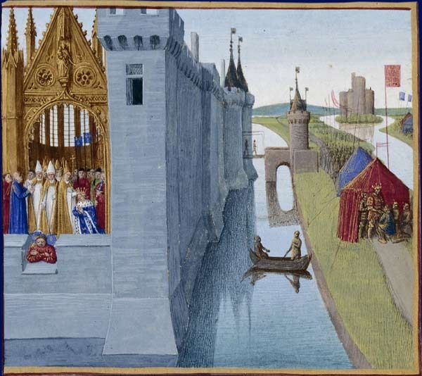 Editor: Here we have the Limbourg brothers' "Calendar: June (Haymaking)" from 1416. It's rendered in tempera, watercolor and water colours, with an almost unbelievable level of detail for such a small miniature. The division between the celestial and earthly zones is very striking; I’m curious to hear your thoughts. What do you see in this piece? Curator: I see echoes of ritual and the deep cultural memory embedded in seasonal cycles. Look at how the Zodiac symbols aren’t just decorative. They're intrinsically linked to the labor below; a symbolic connection to agricultural prosperity. How do you feel about the artist choice to give so much real estate to astrological elements? Editor: I suppose that it does convey an intrinsic connection, or dependence even, on cosmic forces – the agricultural work being subservient to the passage of time… I hadn't thought of it that way. Is the castle just a symbol of earthly power? Curator: It could be, but I believe there's also an aspect of earthly domain in the same image - each half defining the parameters for each plane of existence and who exerts control, divine or otherwise, over each. It’s a microcosm; a layered cosmology presented for our contemplation. What sort of dialogue might the artist have been trying to convey with their compositional elements? Editor: This makes me reconsider the interplay of earthly and celestial power. Maybe the artist is commenting on how closely entwined they were during the period? Curator: Exactly. This piece functions as a complex emblem, not merely a pretty picture for a calendar. Symbols reinforce values of the aristocratic culture that this book was created for and continues today for its viewers. It bridges a certain cultural memory gap and highlights some threads of continuity. Editor: It’s fascinating how a seemingly simple scene can reveal such a deep understanding of both earthly and celestial symbolism. Thank you! Curator: Indeed. These artworks prompt us to reconsider the weight and resonance of visual languages over time.
