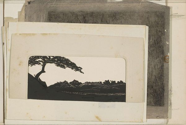 Editor: This is Elena Prentice's "Landscape with Palm Trees," a watercolor piece. The sepia tones lend it a dreamlike quality. What do you see in this artwork? Curator: Palm trees often symbolize paradise, rest, and victory, wouldn't you agree? The subdued palette and what appears to be a protective wall suggest a longing for refuge, a haven. Do you see that, too? Editor: Yes, now that you mention it, the wall does feel like it's defining a sanctuary. Curator: The image evokes a memory—perhaps a shared cultural memory of seeking solace and peace. It highlights the enduring human desire for a protected Eden. Editor: That's a new perspective; I hadn't thought of the piece in terms of a shared longing. Curator: Exactly! Art invites us to explore these collective emotional landscapes. Editor: I'll definitely remember that as I look at other artwork!