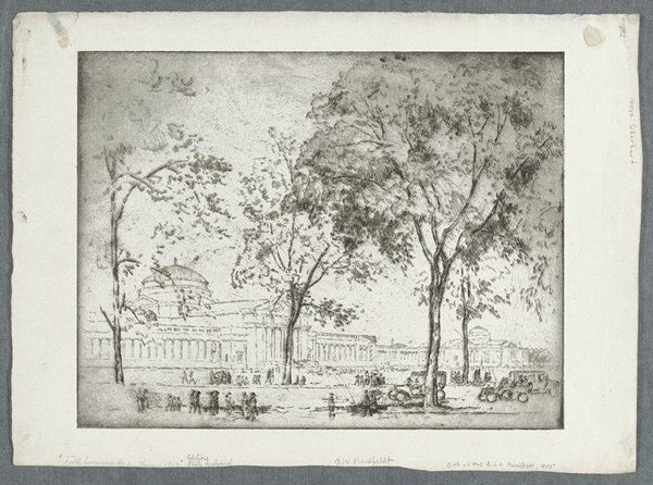 Editor: So, this etching by Joseph Pennell, dating back to the 19th century, is called "Under Cannon Street Station." The detail is amazing, almost photorealistic, and it makes me wonder about the rapid urbanization happening at the time. How do you interpret this work, particularly in the context of that era's social changes? Curator: That’s a keen observation. The etching's hyper-realistic detail is a loaded aesthetic choice. Think about what Pennell, as a privileged white artist, might be emphasizing – or obscuring – by depicting the city this way. What narratives are being validated or challenged in this carefully constructed image of modernity? Editor: Hmm, I guess I was just thinking about the industrial revolution and population growth, but I see your point. What societal issues do you think are most relevant here? The class divide, maybe? Curator: Precisely. Consider the implications of 'Under Cannon Street Station.' This artwork inadvertently highlights class disparities. Cannon Street Station symbolized progress and interconnectedness, yet the "under" space – often a realm of commerce and labor—might suggest the working class obscured by grand narratives. How can we analyze Pennell’s choice of perspective as a possible social commentary or, perhaps, a blind spot? Editor: That’s interesting; I hadn’t considered that Pennell's perspective could be interpreted as a commentary on visibility and privilege within the booming urban landscape. This piece makes you think. Curator: Yes, and that's exactly where the power of art lies: sparking critical engagement with the world around us and the forces that shape it. Art serves as both a document of history and a catalyst for future activism and social progression.