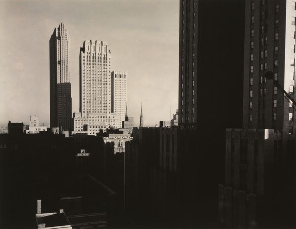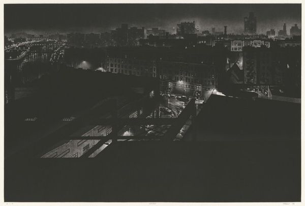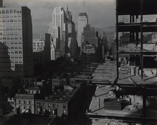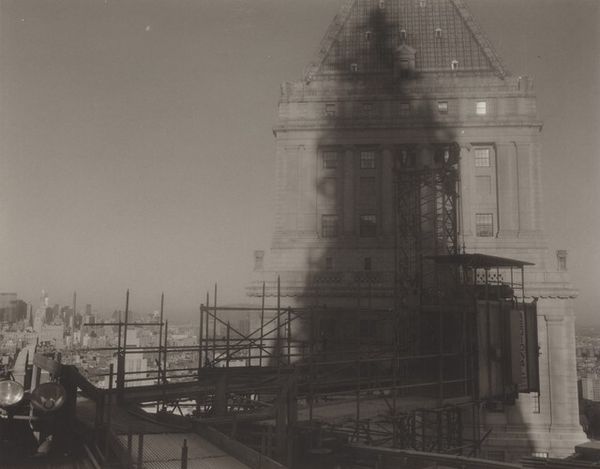 Editor: Hannah Collins' "True Stories 8" presents St. Paul's Cathedral amidst a cityscape under an ominous sky. It feels like a contrast between the historical and the modern, almost dystopian. What stands out to you? Curator: The cathedral, a symbol of resilience and continuity, is juxtaposed against the stark reality of urban development, represented by the cranes. It reminds me of Piranesi's etchings, in the way it suggests the weight of history pressing down on the present, and the impermanence of even the most solid structures. Editor: So, you are saying it explores the tension between the past and present? Curator: Yes. The green sky heightens the sense of unease, perhaps reflecting anxieties about the future of the city. What do you make of the title? Editor: Interesting! It adds another layer, suggesting a narrative embedded in the image. Curator: Precisely! Collins encourages us to consider what "true stories" the city holds and conveys.