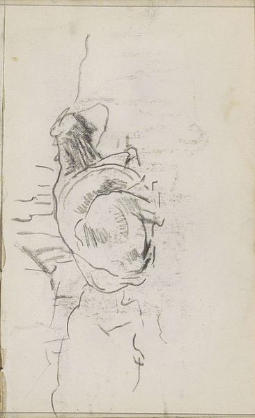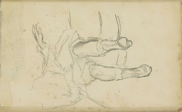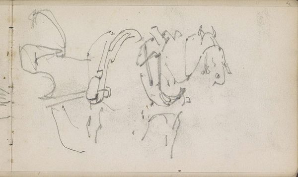 Curator: Let's explore this sketch, "Head of a Cow" by John Singer Sargent, held at the Harvard Art Museums. Editor: It strikes me as unexpectedly intense for a cow. The shading gives it a really stern expression. Curator: Sargent was known for his portraits, often of wealthy patrons. This sketch, though, feels different, more like an exercise. It invites questions about representation and class. Editor: Absolutely. The cow is adorned, almost burdened, by what looks like heavy ornamentation. It asks us to consider the relationship between labor, animal exploitation, and aesthetic representation. Curator: Indeed. Sargent's involvement in various artistic circles shaped his approach, reflecting prevailing attitudes towards rural life and its depiction. Editor: Looking at it now, it is hard to reconcile the artist's society portraits with such working-class images, but I appreciate how it forces us to consider those contrasts. Curator: A brief glimpse into a different facet of Sargent's artistry. Editor: A reminder that even sketches can provoke powerful social commentary.