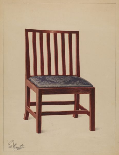 Mario De Ferrante made this watercolor and graphite drawing of a side chair. It’s a seemingly simple image, but even a drawing of a chair can connect us to wider social and cultural contexts. De Ferrante was one of many artists employed by the Index of American Design, a New Deal project that sought to document American material culture during the 1930s and 40s. Artists like De Ferrante were tasked with creating detailed renderings of objects like furniture, textiles, and tools, preserving a record of American design traditions in a time of rapid industrialization. The chair itself, with its elegant curves and restrained ornamentation, reflects a desire to connect to earlier eras, perhaps speaking to a broader sense of nostalgia during the Great Depression. Understanding this drawing requires archival research into the Index of American Design, consideration of the economic conditions of the 1930s, and analysis of the chair's design in relation to earlier styles. Each of these resources would provide a more complete picture of the drawing’s cultural significance.