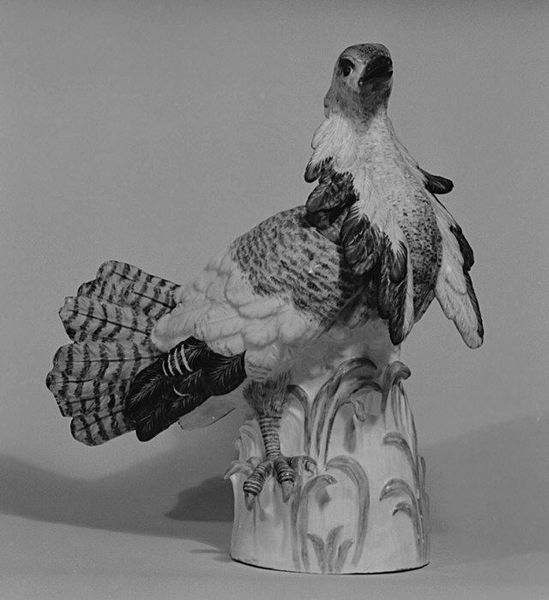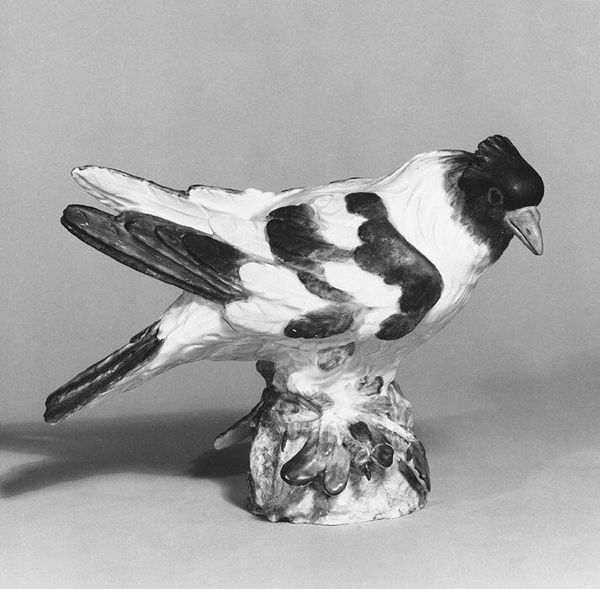 The Meissen Manufactory crafted this porcelain parrot, a testament to the vibrant aesthetics of its time. As Europe expanded its reach through trade and colonization, exotic animals like parrots became potent symbols of wealth, power, and access to far-off lands. These birds, often displayed in aristocratic homes, embodied a complex intersection of status and the exploitation of natural resources. Artisans were tasked with capturing the essence of these creatures, often without ever having seen them firsthand. This delicate sculpture then, is as much about European desire and imagination, as it is about avian reality. Consider how the parrot, perched here so serenely, might also represent a kind of captivity, a life far removed from its native habitat. The beauty of the object belies a more troubled history of cultural appropriation and ecological disruption. The Meissen Manufactory's parrot invites us to reflect on the intricate relationship between art, empire, and the natural world.