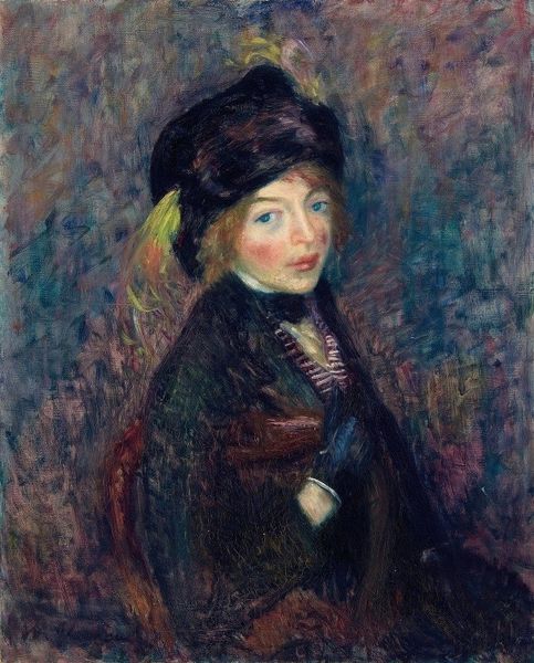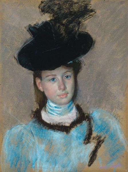Curator: This is Pierre-Auguste Renoir's "Portrait of Margot (Portrait of a Model)", painted in 1877, currently residing at the Musée d'Orsay. Editor: My initial reaction is one of subdued elegance. The colors are soft, almost muted, and the brushstrokes give the painting a feeling of gentle movement, a life held delicately within the frame. Curator: Renoir was deeply interested in portraying the evolving roles of women in late 19th-century Parisian society. Consider the model’s attire – the fashionable hat, the neatly tied scarf – indicative of a bourgeois respectability. Yet there’s a certain introspective quality, a gaze directed elsewhere, that hints at inner thoughts and perhaps societal constraints placed upon women of her time. Editor: Indeed. Structurally, Renoir uses the interplay of light and shadow to define her form. The luminous skin contrasts with the darker tones of her clothing and background. I would also emphasize the way he captures texture - observe the delicate rendering of her hair. This piece showcases the artistic exploration that he began during the late 1860s where portrait work, and an intimate focus upon the single figure, took priority. Curator: And while we admire its formal qualities, let’s also remember the position of women models. Often anonymous, like Margot, these women’s livelihoods depended on their image. There's an interesting dynamic in who is seen, and who has agency. How might Margot have felt about being depicted this way? Editor: I agree, the formal choices may reveal Renoir's skill, and artistic expression, but this does not take away the social context that framed the work itself. Renoir’s aesthetic decisions— the blurring of edges, the soft coloration, creates an emotional landscape that can be explored through the semiotics of form itself. It captures a fleeting moment. Curator: Thinking about the semiotics in relation to this context encourages us to deconstruct the language of the male gaze as it defines 19th-century French portraiture, interrogating it through a more critical, contemporary lens. Editor: Perhaps it comes back to texture; not only as brush strokes, but of her hair, skin, clothing. This haptic quality is a point that touches across the historical position of portraiture with an element that has always captivated artistic interpretations and visions. It all resonates and leaves its mark upon us now. Curator: Indeed. Thinking about "Portrait of Margot" through an intersectional framework allows us to connect past and present discourses about representation, labor, and visibility. Editor: And looking through it from the formal values of color, composition, allows for us to reflect and study on how representation happens in art and history.