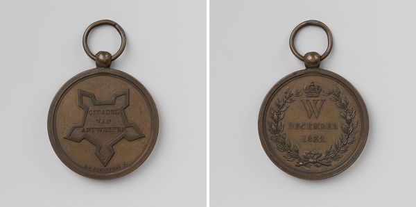 This bronze medal was crafted by Laurent Joseph Hart to honor King Willem II of the Netherlands as patron of the Handboogschutterij "Honos alit arcum" in Tilburg. The dominant image is the act of crowning. A regal figure places a laurel wreath upon the head of a kneeling man. This gesture, steeped in ancient symbolism, speaks of honor and recognition, echoing the laurel-crowned victors of antiquity. We might recall Roman emperors depicted on coins, eternally adorned with laurel, emblems of triumph and divine favor. However, this motif has undergone a fascinating transformation. From symbols of military and political victory, the wreath here is more suggestive of cultural or civic acknowledgement, revealing how symbols adapt and are re-contextualized across time. This act resonates on a deep, almost subconscious level, evoking our primal desires for acceptance and success. The crowning stimulates a sense of accomplishment and admiration.