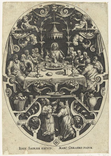 Johann Sadeler I created this engraving, "Christ praying in the Garden of Gethsemane," sometime in the late 16th century. During this time, the Catholic Church was facing the rise of Protestantism, leading to intense religious and political conflict. Here, we see Christ kneeling in prayer, bathed in divine light, while his disciples slumber nearby. Below, soldiers approach, a visual representation of the betrayal and suffering that awaits him. The emotional weight of the scene is palpable, reflecting the human experience of anguish and isolation. Sadeler's work maintains traditional religious narratives while capturing the emotional and psychological depth of its subjects, creating a space for personal reflection. The engraving provides a lens through which to consider the complexities of faith, doubt, and the human condition during times of upheaval.