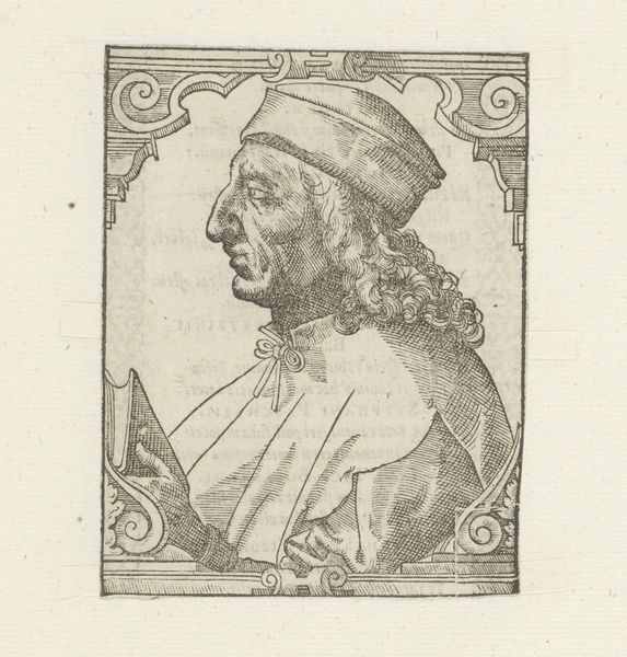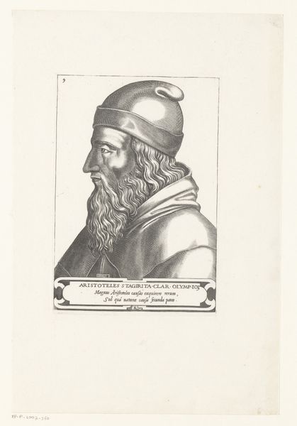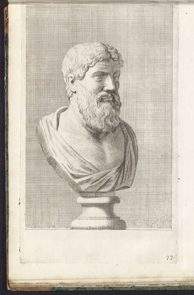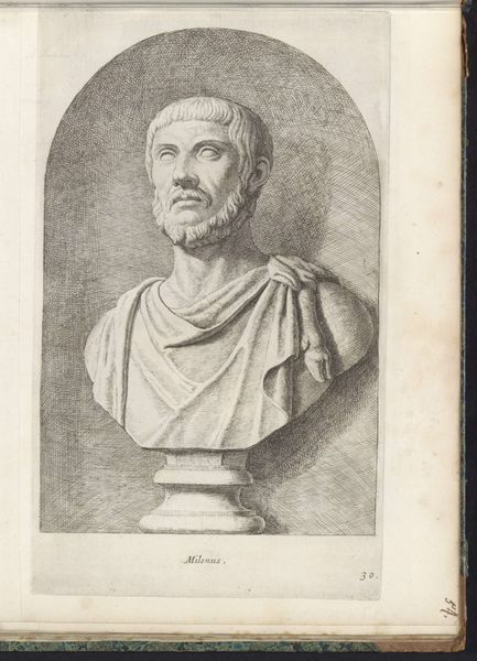 Curator: This print, "Buste van een man met priesterlijke kroon," was created sometime between 1646 and 1670, attributed to Hubert Quellinus, and resides here at the Rijksmuseum. Editor: Okay, first impression... the guy looks a little severe, right? Like he's judging my outfit choices. I do get a strong sense of antiquity too—that classical drapery and the turban thing he's got going on are pretty iconic. Curator: The engraving itself, created during the Baroque era, echoes the broader interest in antiquity present at that time, particularly in its engagement with depictions of historical figures, and that intersects quite directly with ideas around power, and knowledge at the time. Editor: Knowledge... like he knows something I don't? He’s got that knowing little smirk! I imagine someone discovering a lost scroll or something. He almost certainly enjoys riddles. Curator: Well, consider how portraiture at this time functioned. Prints such as this helped solidify social status, communicate lineage. It certainly speaks to a need to solidify and portray particular notions of authority. Editor: It makes you think about representation. Who gets remembered, who gets their face etched in time? This feels...almost performative, you know? Like he’s playing a part. Curator: The figure can also be seen as speaking to tensions during this time concerning religious power. Who holds that power and who dictates who has access to divine knowledge. Editor: Maybe it's the crosshatching, but there's a softness. It keeps it from being imposing or overbearing. Sort of humanizes him, I think. Makes me wonder about his morning routine, or whether he liked his coffee strong. Curator: Prints, especially engravings such as this one, allowed for wider circulation of ideas. Think about it: for those who could afford it, it was a tangible way to connect with knowledge but also to lay claim to that same knowledge in some form. Editor: Right. It's a conversation across time, us looking at him, him… staring enigmatically back at us. A great reminder to stay curious. Curator: Indeed, the historical narratives within it push us to engage with power, knowledge, and authority within an explicitly constructed representation.