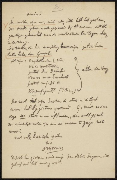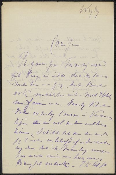 This is Annie Ermeling's letter to August Allebé, and it’s made with ink on paper. The ink flows across the page with a beautiful cadence, like a dance of dark and light. Look at the looped 'L' in ‘zal’, it’s like a little flourish, a moment of joyful abandon amidst the formality of the grid, which speaks to the rhythm of life itself, full of structure, but also spontaneous expression. The overall impression is one of delicate control, a testament to the power of simple materials. The pressure of the nib on the paper, the subtle variations in line weight, it all adds up to something quite moving. It reminds me of Cy Twombly’s drawings, how he could make the simplest mark feel so monumental. I’m left thinking about how art is, at its core, a conversation, a passing of notes between people across time. It invites us to linger, to question, to embrace the beautiful messiness of interpretation.