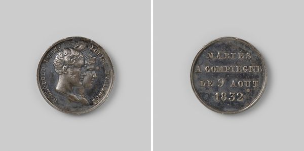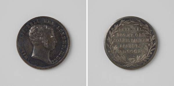 Curator: Here we have a commemorative medal crafted in 1815, celebrating the inauguration of Willem Frederik as King Willem I in Brussels. The material appears to be metal, probably silver. Editor: My initial impression is its somber tone. Despite the celebratory nature of its creation, the cool metallic sheen and the neoclassical style impart a sense of formal, almost austere, authority. Curator: Indeed, and examining the object further through an intersectional lens reveals that the neoclassical style reinforces the self-representation of the monarchy. Think of Jacques-Louis David's portraits of Napoleon: the emperor as a Roman consul, full of symbols and coded meaning. These coins functioned similarly in a post-revolutionary environment where inherited aristocratic authority was under scrutiny. Editor: Precisely. Look at the crisp lines, the relief is sharply defined. Note also the way the laurel wreath frames the text on the reverse; it adds to this calculated, deliberate aesthetic. What specific meaning do you find inscribed on the text-side of the coin? Curator: Inscribed are Latin phrases indicating the sacred nature of the king’s inauguration. We are seeing an intentional crafting of monarchical power through the iconography and language of the Roman Empire to present King Willem I as a leader with ancient, almost divine legitimacy. Considering the context of its production after the Napoleonic era, the desire for such manufactured legitimacy becomes very apparent. Editor: It is also remarkable how such symbolic weight is achieved in such a small object, probably a few inches in diameter. Each compositional decision magnifies this desired sentiment of immutable, inevitable authority. The obverse and reverse function almost as interlocking theses toward ideal governance. Curator: I think one can interpret this coin as more than a commemorative object. It served as a tactile form of propaganda and political rhetoric circulated at a critical juncture. It visually constructed King Willem I's role not just as a ruler but as an ordained leader sanctioned by both divine right and historical precedent. Editor: I concur. I walked in reading "cool metal" but I am now experiencing that it is far from affectless: I am also feeling its calculated message to reassure power and control in unstable times.