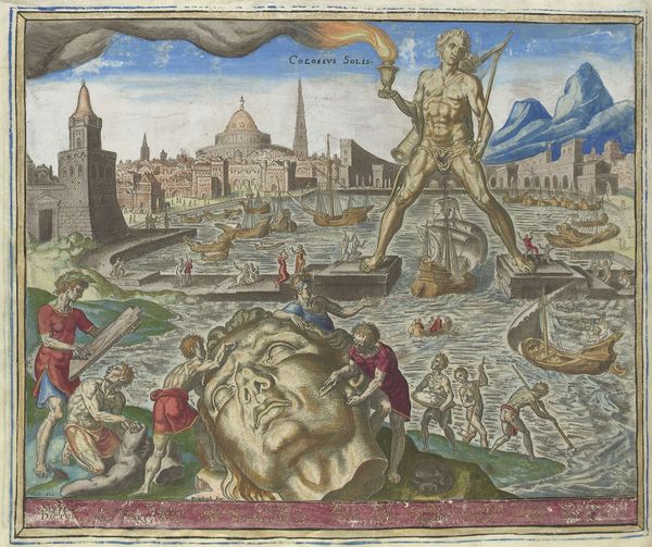 Philips Galle created this engraving of the Lighthouse of Alexandria in the late 16th century, capturing the legendary structure with an eye for both detail and symbolism. Dominating the composition, the lighthouse, or ‘Pharos’, represents not just a navigational aid but also human ambition and technological prowess. Note the spirals of the tower, echoing the Tower of Babel, a timeless motif symbolizing man's striving for the heavens. This symbol transcends cultures, reappearing throughout history, from ancient ziggurats to modern skyscrapers. The spiral form itself, found in nature and architecture, carries a potent psychological charge. It evokes a sense of progression, expansion, and the cyclical nature of time. The lighthouse, then, is a powerful emblem of human aspiration, a beacon of hope against the turbulent seas. It represents the enduring quest for knowledge and enlightenment, a guiding light across the ages.