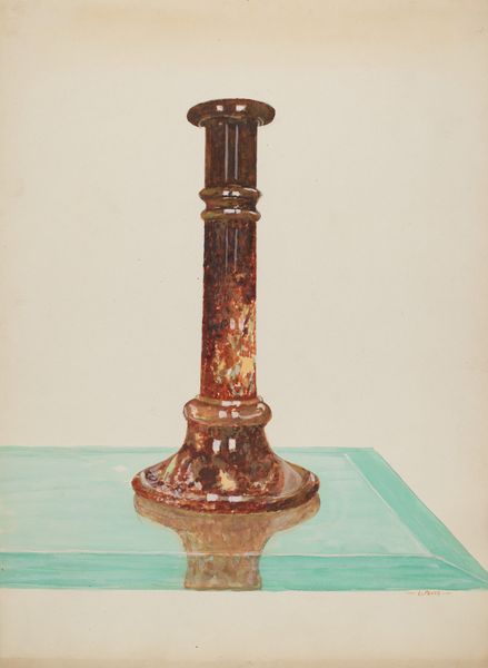 Harold Ballerd made this watercolor painting of a stool. Though the stool is a simple, utilitarian object, Ballerd elevates it, asking us to consider the cultural and historical implications of this piece of furniture. The stool is presented as a solitary object, set against a plain background, which invites contemplation. The dark wood of the seat contrasts with the teal of the base. There is an undeniable handmade quality, emphasizing craft and perhaps resistance to industrialization. In many cultures, a stool is more than just something to sit on. It’s a symbol of status, community, and tradition. Consider how something so simple carries histories of labor, domesticity, and the everyday lives of people. Harold Ballerd asks us to consider the cultural and historical implications of the art piece, and how it shapes our understanding of value, history, and identity. It’s about finding beauty and meaning in the mundane, and maybe, a reflection on our own place in the world.