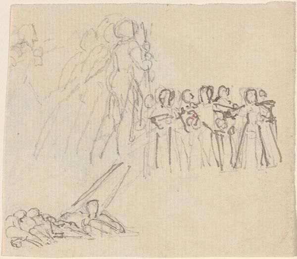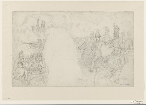 Jan Willem Pieneman made this pencil drawing, ‘Study for The Battle of Waterloo’, in the early 19th century. It depicts a pivotal moment in European history, but it also shows how art became entangled with the making of national heroes. This sketch gives us a behind-the-scenes look at Pieneman's process, as he worked to capture the drama and glory of the battle. The work was commissioned for public display in the Netherlands, and it's interesting to note how Pieneman uses visual cues to shape the narrative. The focus on military figures, their weapons, and the implied violence speaks to the values of the time. The sketch highlights the political motivations behind history painting, and how it was used to cultivate a sense of national pride and unity in the wake of conflict. To fully understand the significance of this drawing, we might delve into the archives of the Dutch monarchy, exploring the commissions it made and the political motivations that shaped its patronage.