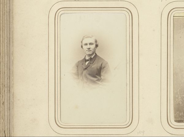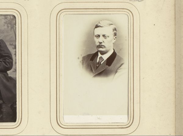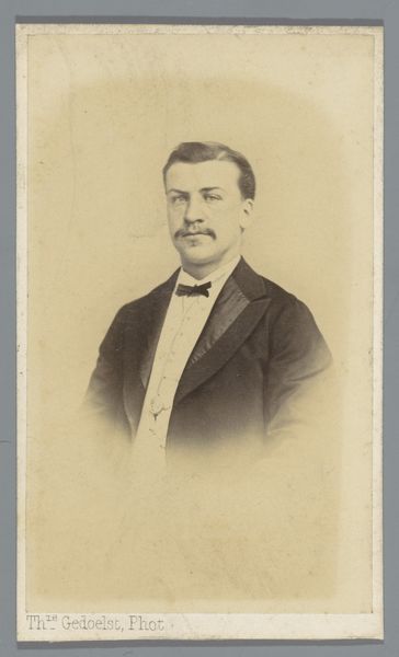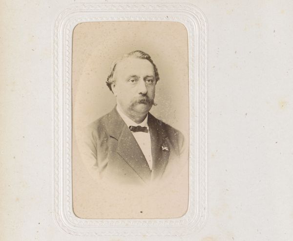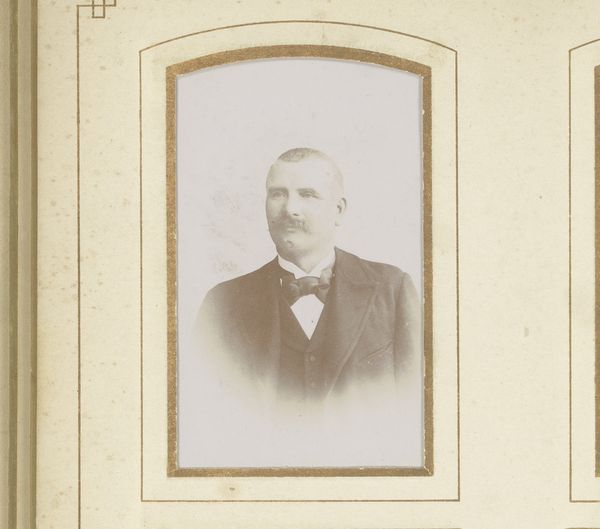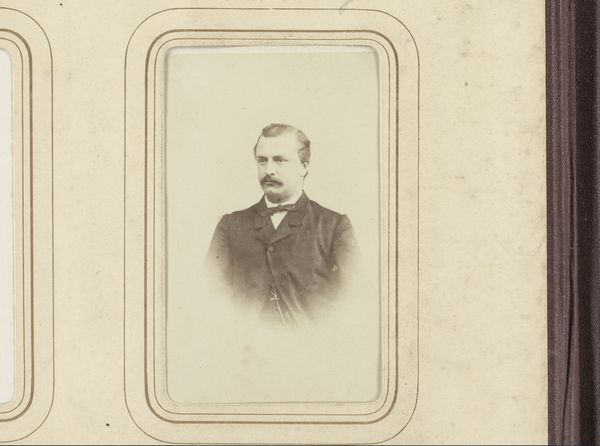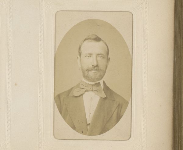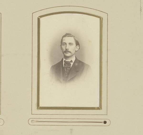 Notman & Fraser captured this sepia toned portrait of a man with a moustache in an oval frame using photography. The image is dominated by the sitter's face, framed by a rounded oval which softens the image. The man, smartly dressed in a suit and bow tie, confronts the viewer directly, his gaze steady and somewhat neutral. The subtle gradations of light and shadow play across his face, highlighting the texture of his moustache and the crispness of his collar. The composition, while simple, engages with contemporary notions of identity and representation. The subdued palette and formal pose lend a sense of dignity, yet the very act of capturing an image introduces the idea of constructed identity and self-presentation. The photograph invites us to consider the interplay between appearance and reality, challenging fixed meanings and values.