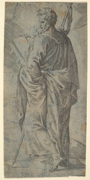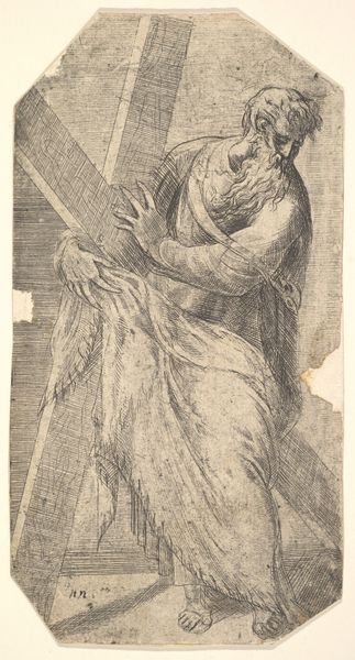 Curator: Looking at this artwork, titled simply "Judith", an intaglio print and drawing, created in the 16th century, the dramatic narrative emerges, a classic historical theme portrayed with remarkable detail. The work now resides at the Metropolitan Museum of Art. What captures your immediate attention here? Editor: Well, first off, she's looking away, which I always find intriguing. Like, what's she seen, or what is she about to do? The delicacy of the lines gives it this kind of hushed intensity, despite the, you know, kinda graphic subject matter lurking there. Curator: Precisely. The averted gaze heightens the psychological tension. "Judith" carries potent cultural echoes, frequently embodying a tale of feminine power and cunning, where faith confronts oppression. Consider the potent visual language that has amassed around this biblical character over the centuries, a heroine but also a violator. Editor: Definitely a violation vibe there! Though the etching feels, almost dreamlike? I mean it's not romanticizing what happened at all. What does the lack of vivid detail really bring? It kind of distances the viewer, almost like we are catching a glimpse of something forbidden. Curator: The intentional withholding mirrors the ambiguities inherent to Judith’s story itself. A pivotal act committed for the preservation of her people, tinged with moral complexity and internalized trauma. We see how Renaissance artists repeatedly grapple with such moments, translating epic history into psychological drama. The Renaissance placed high importance on drawing; this one provides a view into its priorities. Editor: It's crazy how much storytelling and meaning can be crammed into seemingly understated works. Even though there aren't bright colors and a bunch of "action," it evokes this enormous conflict. Curator: Indeed. And the print medium lends itself to the wide distribution of such a pivotal scene. Now, reflecting on this artwork and its historical context, what resonates most profoundly? Editor: The complexity, the way it leaves me with more questions than answers. I am definitely hooked! Curator: For me, it highlights the timeless dance between power, piety, and perspective—elements forever captured in ink.