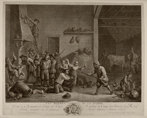 Anthonie Palamedesz. crafted this guardroom scene with oil on canvas. The painting’s composition is constructed around a stark contrast between light and shadow, which animates the visual field and infuses the mundane scene with a dramatic sense of tension. The foreground is dominated by a soldier, viewed from behind, whose bright uniform pulls us into the pictorial space, while his halberd directs the eye towards a group of figures engaged in various activities around a table. The use of dark tonality, especially in the background, destabilizes the usual focus on heroic or idealized subjects, shifting attention to the everyday lives of soldiers. The painting can be interpreted through the semiotic lens as a representation of power dynamics. The soldier's commanding presence is in contrast with the relaxed postures of the others, suggesting complex social relations within the guardroom setting. The artwork's formal qualities of chiaroscuro and composition serve to undermine traditional notions of military valor, creating an ambiguous commentary on the realities of military life. This challenges fixed interpretations, inviting ongoing reflection on the relationship between power and representation.