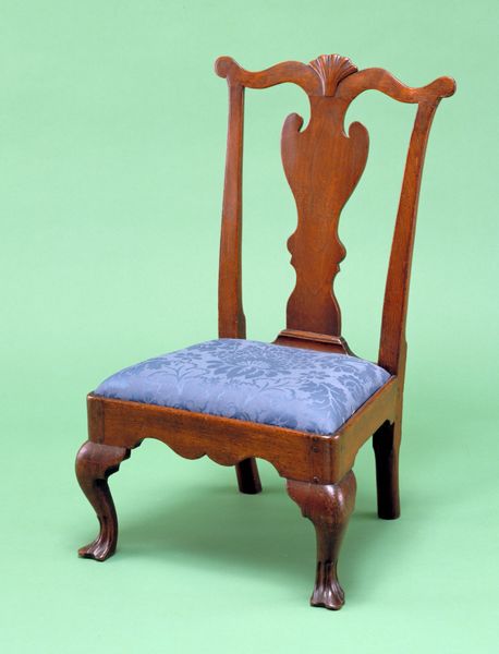 Curator: Let's turn our attention to this fascinating chair, "Stoel met donker gekleurde naar beneden gerichte driehoeken," made of wood sometime between 1920 and 1930 by Cornelis Jouke Blaauw. Editor: It’s… imposing. The dark triangles pointing downward give it a weighty, almost oppressive feel. Not exactly what I look for in seating. Curator: It's very much in line with Art Deco principles, using geometric shapes to convey a sense of modernity. Those dark triangles you mention play with shadows and create visual interest, perhaps reflecting the unease of the interwar period. Were these triangles related to male authority and order over female domesticity and design, in what at the time would be the space "reserved" for women. Editor: I'm more drawn to how the wood is treated. Look at the joinery, those decorative insets on the legs, and how the seat is built. The visible labor involved in its construction makes it much more compelling. I see evidence of human craft and intentional design here. What were the socioeconomic realities for a craftsman to spend this much time creating this piece? What level of access to material did they possess? Curator: That’s a key point. It's an object reflecting class and power structures in its making and consumption. The owner likely occupied a very different space than the artisan who built it. We need to remember who has historically held space, who hasn’t, and question how these pieces reinforce or challenge those norms. What would the social function have been for such a powerful chair? Who gets a seat at the table? Editor: Precisely! The contrast between the handcrafted detail and the implied wealth needed to commission it brings up questions about artistic labor versus luxurious consumption. Is this a critique of social inequality through material, or does it simply reinforce existing hierarchies? Curator: A valuable point. Thinking through the politics and ethics of design prompts important questions that art must pose. This chair is clearly more than just a functional object. Editor: Absolutely. Considering the making of things allows us a deeper look at who they were for. The craft of furniture production exposes important values in this historical context.