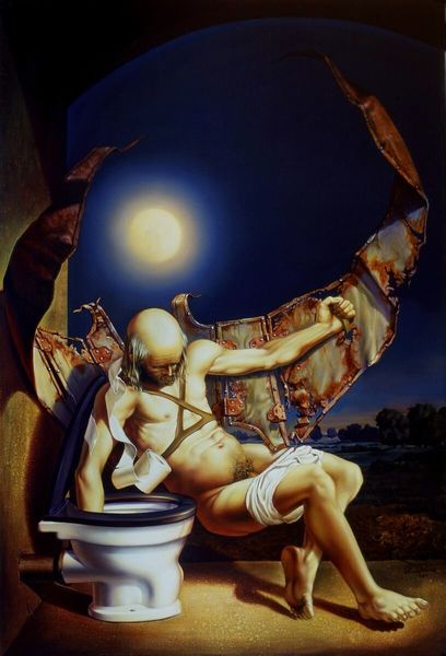 Michael Hayes’ ‘Princess of Mars’ from the 20th century, is an oil painting. The artist’s chosen medium is one of the oldest, where dry pigment is mixed with oil, usually linseed, to create a paste which when applied to a surface dries slowly, allowing the artist to rework the image. Hayes demonstrates the versatility of this medium with detailed brushwork, creating texture and movement. This is evident in the Princess's hair, which is painted with a high degree of realism. The artist has used the fluidity of the oil paint to model the muscles in the Princess's body, and the texture of the ruined architecture of the Martian landscape. Oil paintings require time and skill and have long been associated with the traditional fine arts and high culture. The labor-intensive process of oil painting contrasts with industrial production methods, reminding us of the value placed on individual skill and craftsmanship, as well as the rich traditions of this art form.