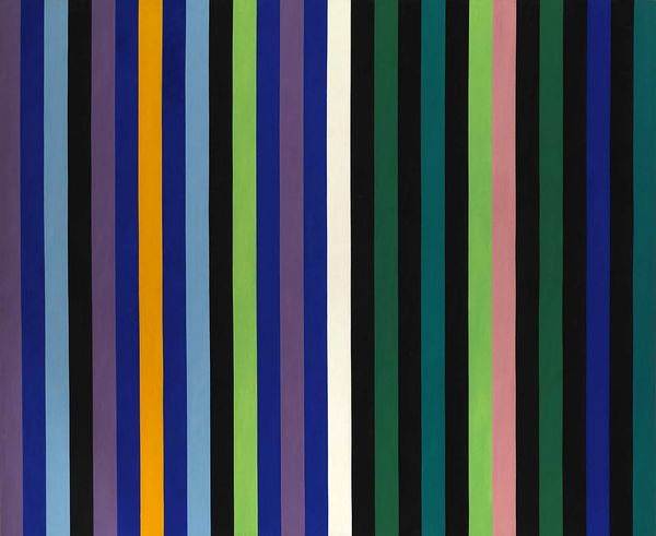 Gene Davis made this painting, "Firebox", using stripes of color – a deceptively simple strategy. It's the kind of thing that makes you think, "Hey, I could do that!" But of course, you couldn't. I love the way the colors play off each other; it’s like a visual chord. They’re not blended, but the way they sit next to each other is a study in relationships. Take a look at the olive green stripe. It's kind of muted, but it holds its own against the bolder reds. The painting is flat and pretty smooth, no wild gestural brushstrokes here; that lets the colors do all the talking. This piece reminds me a little of Agnes Martin's grids, or maybe even some of the early Op Art folks, but Davis brings his own sense of rhythm and play to the game. It's a reminder that art isn't always about complexity; sometimes, it's about finding the magic in the simplest of forms.
