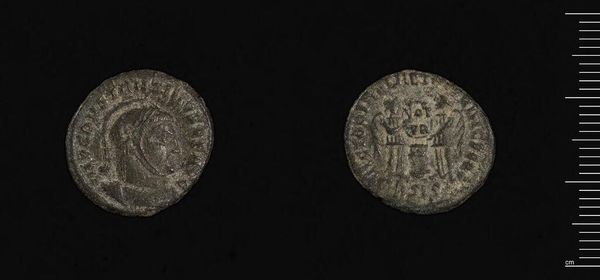 Editor: Here we have a coin, attributed to Leo III. It's aged, worn smooth in places. The portrait is stylized, almost cartoonish. What can you tell me about its significance? Curator: This coin offers a glimpse into the Byzantine Empire’s sociopolitical landscape, particularly the iconoclasm controversy. Images of Leo III are on the coin. Consider how the representation of power and authority is being codified through imagery at this time. What do you see in this image that might reflect cultural anxieties? Editor: I see a ruler, presented very formally. A bit intimidating. Curator: Exactly. The coin served as propaganda, reinforcing Leo III’s authority. Now, think about the act of distributing these coins. How might they function in shaping public opinion and solidifying power structures? Editor: I guess it's a reminder that even something small can carry a big message. Curator: Precisely! It underscores how art and politics are intertwined.