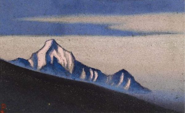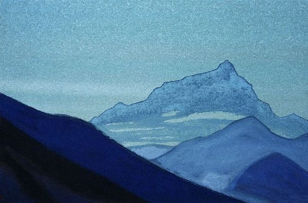 Nicholas Roerich made this watercolor painting, "Himalayas," and you can see how he’s built it up in layers. There’s a real sense of process in this work, and you can see how the colors interact and bleed into each other. I love the way the dark blues and greens of the mountains contrast with the soft pinks and blues of the sky. The paint is thin, transparent, and washy, which gives the piece a dreamy, ethereal quality. Look closely at the peaks of the mountains – you can see how Roerich used a delicate touch to create the snow-capped effect. It’s like he’s letting the medium of watercolor do its thing, allowing the colors to mingle and merge on the paper. Roerich's approach reminds me of Agnes Martin. Both artists create work that’s meditative and spiritual, inviting us to contemplate the beauty of the natural world and the mysteries of the universe. Art is not about answers, it is about making space for contemplation, just like this painting.