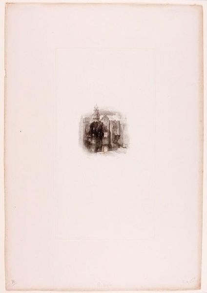 Editor: Here we have Edward Goodall’s etching, "Captivity." The title suggests confinement, which is interesting when you consider how small the architectural details are within the vast white space. How does the historical context shape our understanding of this piece? Curator: The title "Captivity" certainly invites speculation. What could Goodall have been communicating? Given his era, could this perhaps be a comment on the societal constraints of the time? The artwork becomes a visual metaphor. Editor: So, it's less about a literal prison, and more about societal structures? That’s a really interesting take. I hadn't considered that. Curator: Exactly. Art often serves as a mirror, reflecting and questioning the norms of its time. What did you initially make of it? Editor: I thought it was just a building, but now I see there's more than meets the eye. Thanks!