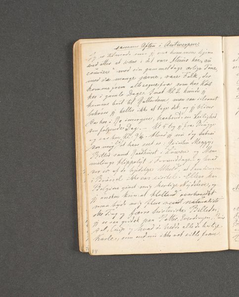 Curator: This pen drawing on paper is titled "Rejsedagbog. Amsterdam," which translates to "Travel Journal. Amsterdam." It was created by Johan Thomas Lundbye in 1846 and now resides in the Statens Museum for Kunst. Editor: It looks like an intimate glimpse into the artist's private thoughts, almost like peering over their shoulder as they jot down observations. There’s a certain quiet intensity to the scrawled script. Curator: Absolutely. As a travel journal, the miniature serves as a portable repository of experiences. In the Romantic era, the sketchbook evolved into more than just preliminary studies; it was seen as a space for capturing the immediate sensations of travel and reflection. The hurried writing conveys the sense of fleeting time. Editor: Do we know more about why Lundbye was in Amsterdam? How might understanding the journey contextualize the marks made here? Are there social and political undertones shaping what is included, what is omitted from this personal document? Curator: Sadly, the page exhibited from this sketch book is missing accompanying imagery, which makes finding answers challenging. However, Lundbye, a Romantic painter, frequently worked with themes of nature and the sublime, connecting to feelings, memory and the symbolism of personal experience. Text becomes as equally important as a picture in recording observations of travel. It suggests not just what he saw, but what moved him, what he sought to understand. The handwritten nature becomes like a code to break, it gives unique insight. Editor: That act of recording, the labor of writing, especially at that time, was often a highly gendered activity. Were journals primarily a space for white European male introspection? This glimpse into Lundbye's journal prompts so many other questions of access, and I wonder whose voices, literally or figuratively, are excluded from this “personal” historical record? How do broader structures shape intimate thoughts, the choice of detail, and the nature of looking? Curator: Those questions are vital. By the 19th century, written languages acted as visible forms and signs, embodying an almost divine nature, and this miniature page reveals what Roland Barthes defined as “the pleasure of the text.” Editor: Definitely. The scale invites us into that sense of personal pleasure. Looking closer, I am touched by the labor and dedication the writing conveys. I value the opportunity this provides, opening doors into a particular life, in a particular moment, with such distinct sensitivity. Curator: It is truly an honour to reflect together, adding new layers of appreciation.