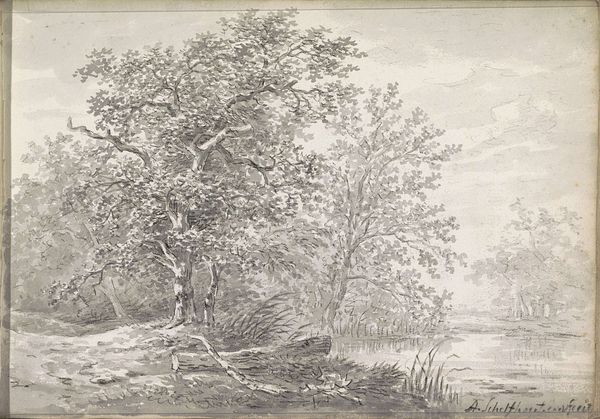 Jan Hulswit rendered this waterside landscape with trees in a drawing, sometime in the late 18th to early 19th century. The drawing shows a few trees reflected in the water, in a simple composition. The image of the tree as a symbol is deeply embedded in our cultural memory. Throughout history, across cultures, the tree connects heaven and earth. It is often seen as the "axis mundi", the center of the world. Here, the depiction of trees reflected in the water creates a doubling effect, and we can associate the natural environment with notions of mirroring, subconscious, and introspection. Consider, for instance, the ancient Greek myth of Narcissus, who became so engrossed in his reflection in a pool of water that he gradually withered away. In art, water reflections have often symbolized a gateway to inner truth and the ephemeral nature of human existence. Hulswit presents to us a landscape rich with symbolism, engaging our subconscious on many levels.