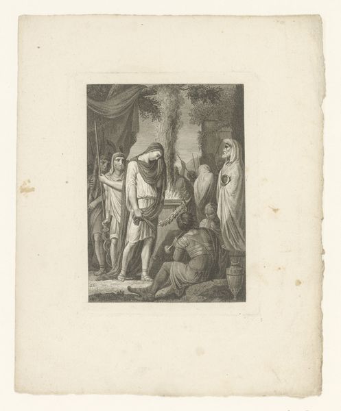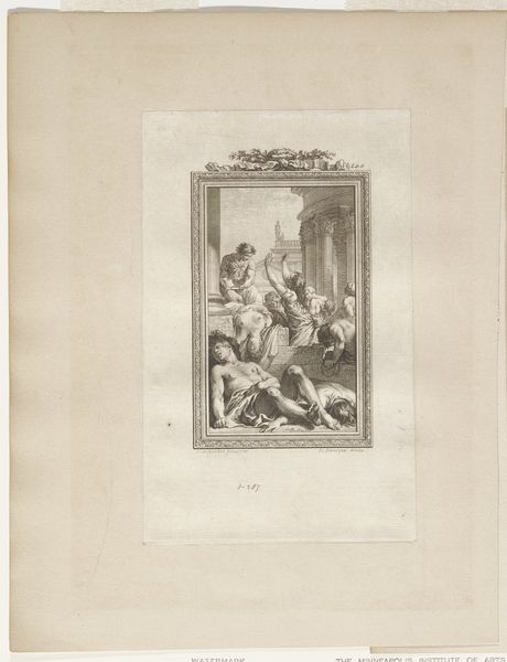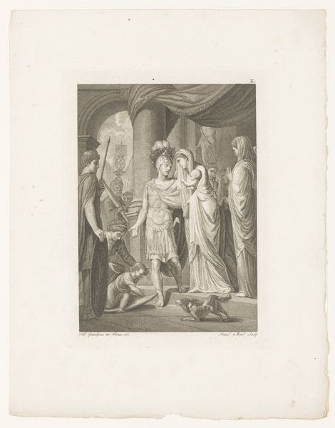Tommaso Piroli created this print, "Germanicus wordt 's nachts gewekt in het legerkamp," capturing a moment laden with historical and cultural significance. The crescent moon hanging in the night sky is the most striking visual symbol; it has long been associated with cycles of change, mystery, and the feminine. This symbol has echoed through different eras, from its veneration in ancient lunar cults to its appearance in Renaissance art as a symbol of chastity and divinity. We can see traces of this powerful image embedded in our collective memory. Consider the psychological implications: the moon, as a nocturnal presence, often evokes feelings of introspection and hidden forces. The act of awakening Germanicus in the dead of night, under the watchful eye of the moon, amplifies the sense of urgency and hidden fate. This cyclical progression of symbols highlights how cultural memory shapes our understanding and connects us to the past, resonating in the present with renewed emotional and psychological depth.